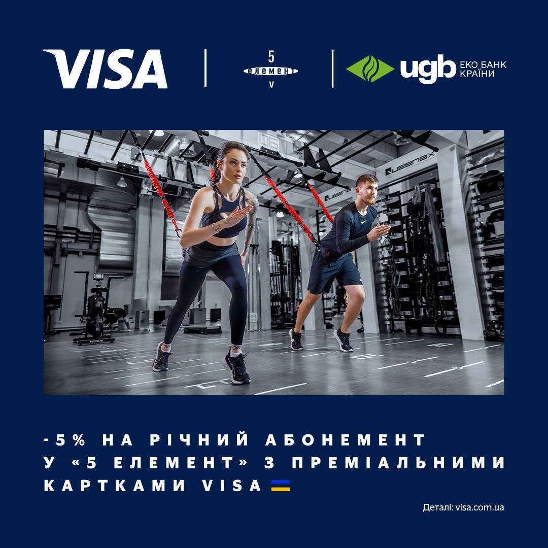 -5% на річний абонемент у «5 елемент» з преміальними картками Visa!