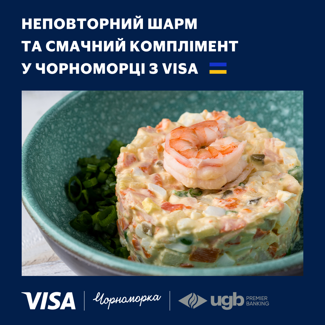 Умови та деталі – на https://www.visa.com.ua/uk_UA/pay-with-visa/promotions/chornomorka-restaurant.html