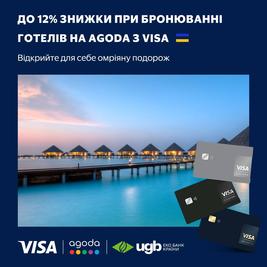 Вирушайте в омріяну подорож разом з Visa та отримуйте до -12% на бронювання готелів на Agoda.