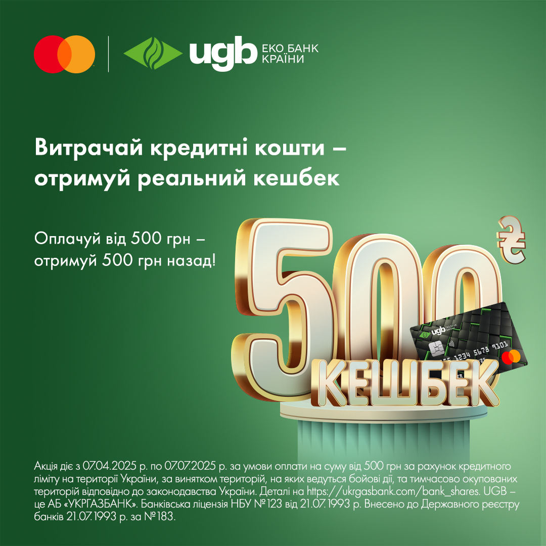Отримай 500 грн кешбеку за оплати кредиткою!