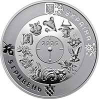 На аверсі монети розміщено: угорі – малий Державний Герб України, праворуч від якого напис півколом УКРАЇНА; на дзеркальному тлі по колу зображені 12 символів східного календаря, у центрі кола – стилізований годинник зі стрілкою, що вказує на коня – символ року, над стрілкою – 2026; унизу ліворуч напис півколом 5 ГРИВЕНЬ; на матовому тлі зображені стилізовані під українську витинанку символи кожної пори року: сніжинка (угорі), квітка (праворуч), ягода (унизу), листок (ліворуч); логотип Банкнотно-монетного двору Національного банку України (праворуч над символом тигра).