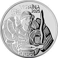 На аверсі монети на матовому тлі зображено стилізований образ Магури – персонажа праслов’янської міфології, жінки-птаха з розправленими крилами, що тримає меч і щит. Вона уособлює Матір Славу, Перуницю – богиню війни, перемоги та вічного життя, покровительку війська слов’ян-русів. На щиті Магури – малий Державний Герб України. У верхній частині композиції зазначено: напис УКРАЇНА, номінал 5 та графічний знак гривні, а також рік карбування монети – 2025. Унизу ліворуч розміщено логотип Банкнотно-монетного двору Національного банку України.
